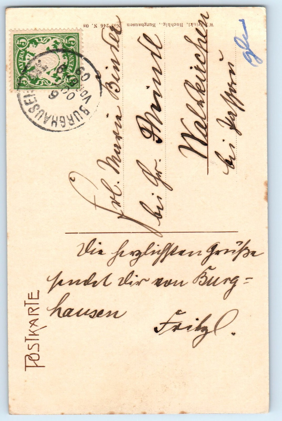 Upper Bavaria Germany Postcard Burghausen Castle 1909 Antique Posted