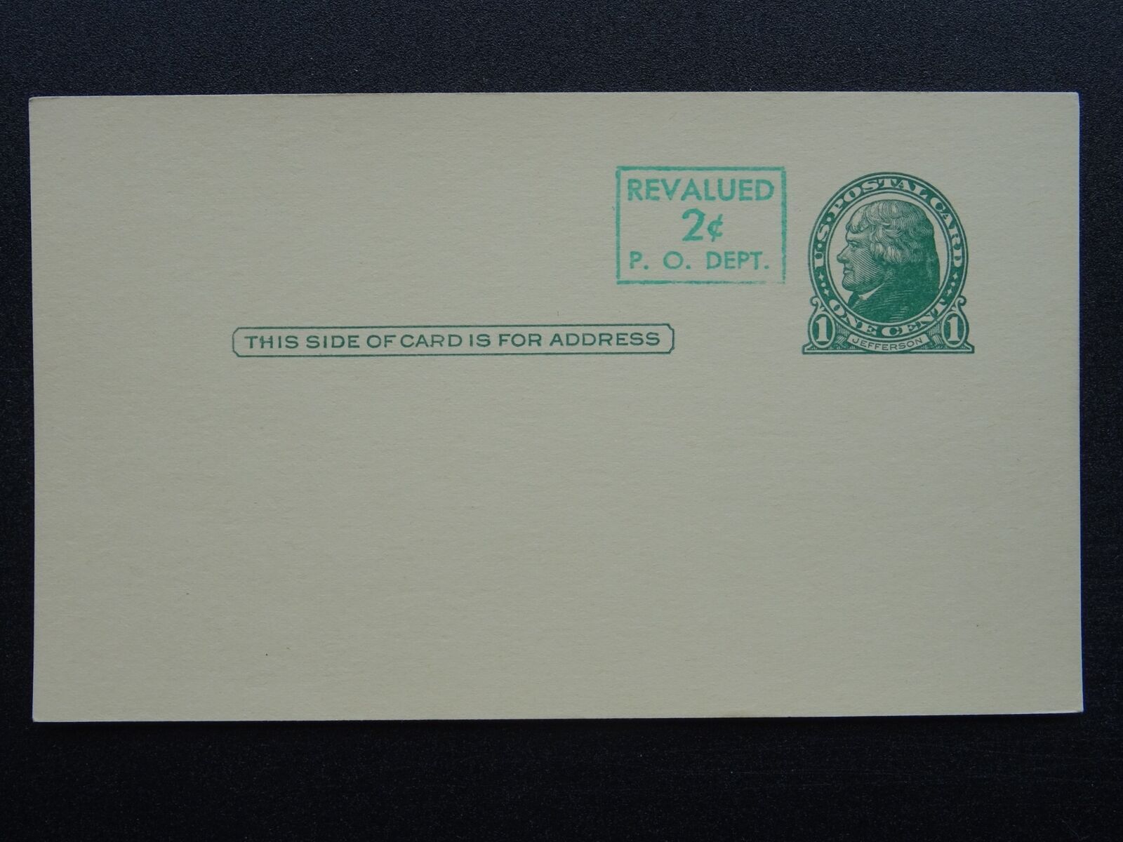 US American POSTAL CARD 1 Cent THOMAS JEFFERSON 'Revalued' 2 Cent US American POSTAL CARD 1 Cent THOMAS JEFFERSON 'Revalued' 2 Cent Postcard Details Additional Information - Condition (VG) Very Good / Postally - unused /Postcard Details - Please see detail on the photographic image or contact us for details. Abbreviations: (UB) Undivided Back / (RP) Real Photograph Postcard / (PM) Postmark Interest / (CDS) Cancellation Date Stamp / (SQC) Squared Circle / (DP) Duplex PostmarkPTP Reference - 081123 Postcards WelcomeWelcome to our store. At Past Time Postcards we stock a comprehensive range of British antique and vintage topographical postcards, cigarette cards, rare antique prints and other antique collectables.We aim to make your shopping experience enjoyable and stress free. We list our postcards topographically and by subject matter to make it easier for you to locate the items that interest you. Feel free to browse and explore at your leisure, however if you require assistance locating items or have a specific request please don't hesitate to contact us.Combined Postage We will always combine postage when you purchase multiple items. Please make your multiple purchases by using your Hip BASKET where postage will be combined automatically.Postage & PackagingPostage rates are calculated to include postage and packaging. All Full Sets of Cigarette or Trade Cards are posted 1st Class and protected with a plastic sleeves in a BOARD BACKED ENVELOPE & FULL SET HAVE ADDED STIFFNER BOARD for added security and protection. Payment MethodsOur preferred method of payment is through PayPal for all purchases.UK CUSTOMERS can make payment by PayPal, Personal Cheque or Postal Order. PLEASE NOTE: Credit cards included in PayPal payment method Inc. Visa, MasterCard, American Express, Discover. FOR CUSTOMERS OUTSIDE THE UK: we can only accept PayPal as method of payment100% SatisfactionIf in the unlikely event you are unhappy with your item you have purchased on the basis that the postcard was incorrectly described or graded we do offer a complete refund less the cost of postage and packaging once the item is returned to us.Condition & Grading Information(M) Mint – Like new, almost perfect(EX) Excellent – No obvious flaws, sharp corners, clean and if postally used the writing does not detract from appearance.(VG) Very Good - Minor defects such as album marks, signs of age and handling is acceptable that do not detract from appearance.(G) Good – Noticeable defects, handling and wear apparent. Minor creasing or minor postal damage not detrimental to image.(F) Fair – Obvious creasing, staining, small tears or damp damage evident. Significant edge or corner damage.(P) Poor – Incomplete or image seriously affectedFinally if you have any specific requests or questions we are always very pleased to offer support and assist you with your collecting needs.Kind regardsMark - Past Time Postcards Listing and template services provided by inkFrog