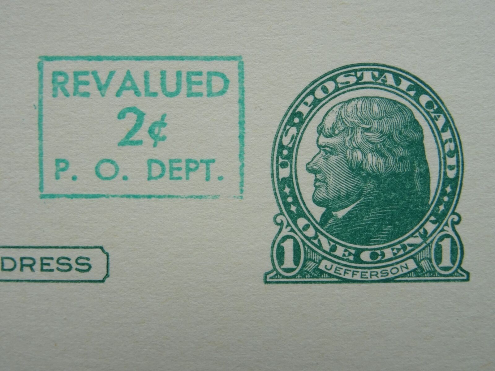 US American POSTAL CARD 1 Cent THOMAS JEFFERSON 'Revalued' 2 Cent