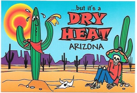Postcard featuring Arizona. "But its a DRY HEAT!" Yup :)