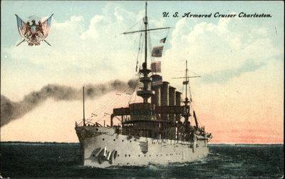 US Armored Cruiser Charleston Military Ship c1910 Postcard