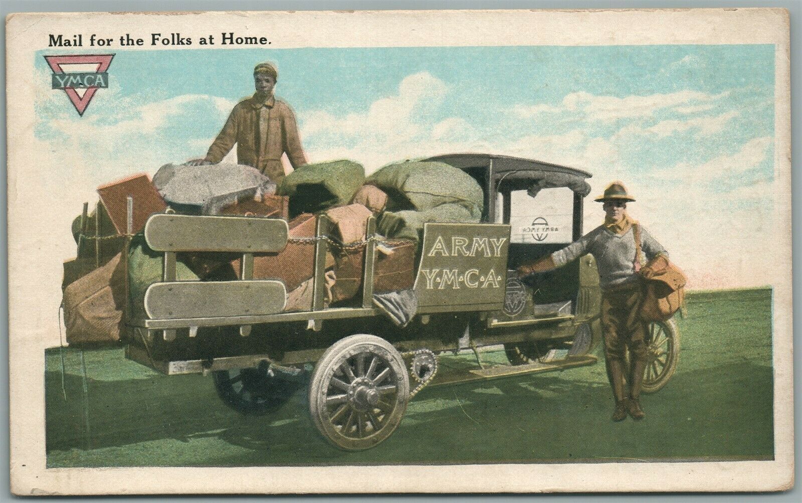 US ARMY YMCA MAIL TRUCK ANTIQUE POSTCARD