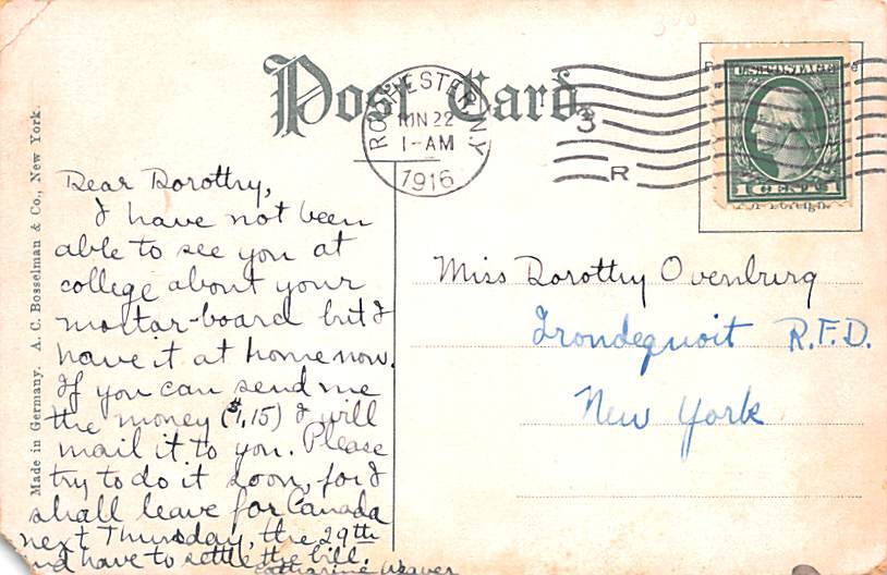 C = Continental Size Postcard - approximately 4 inch X 6 inch (15 CM X 10.5 CM)