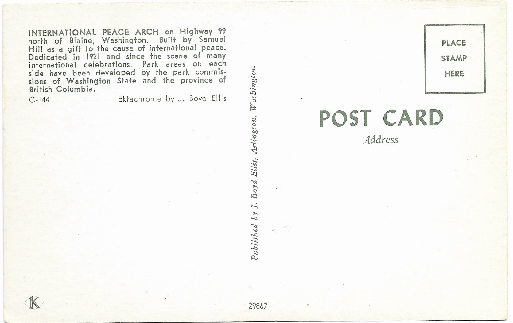 US Peace Arch. Unused. God, Bless America. Please.Seller Information