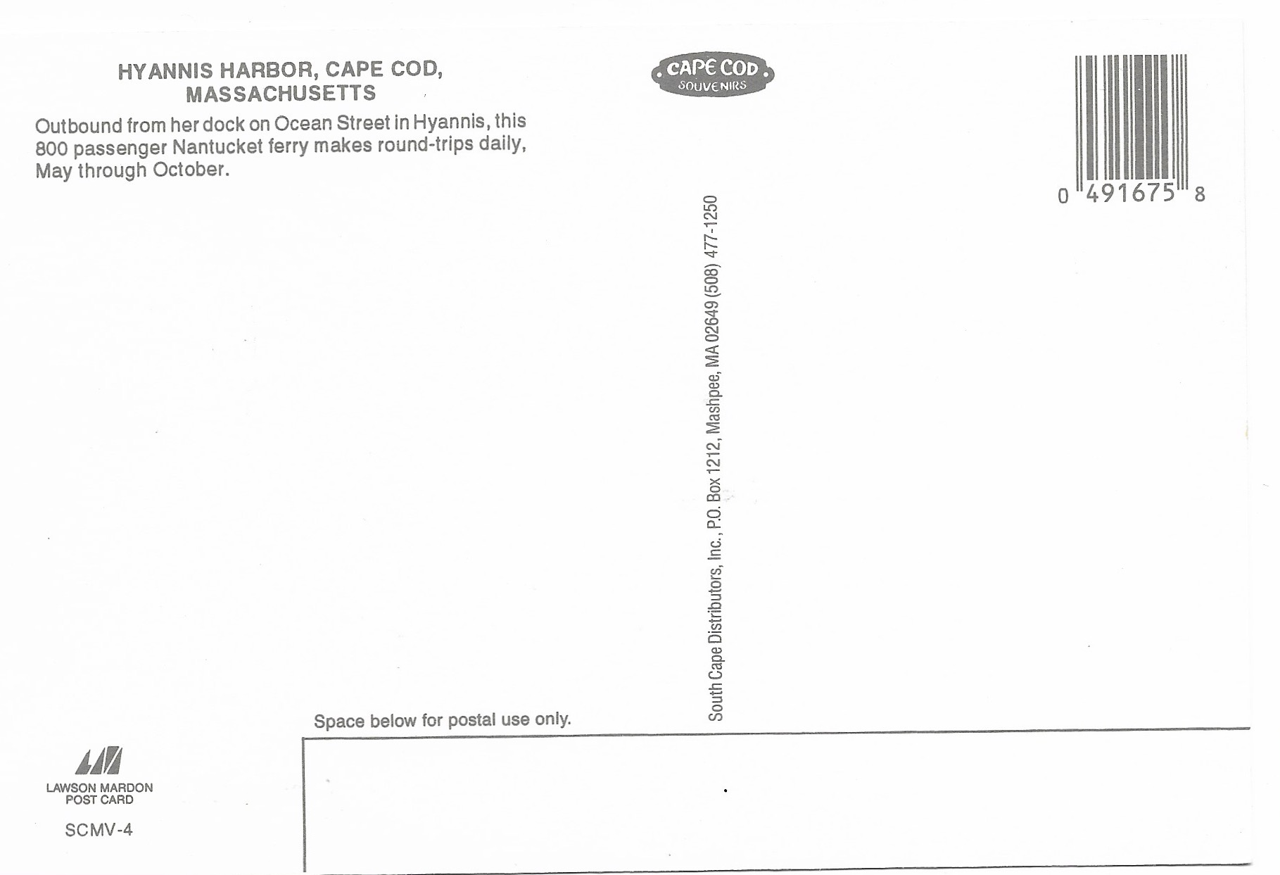 US Cape Cod. Hyannis Harbor. Beautiful. unused.