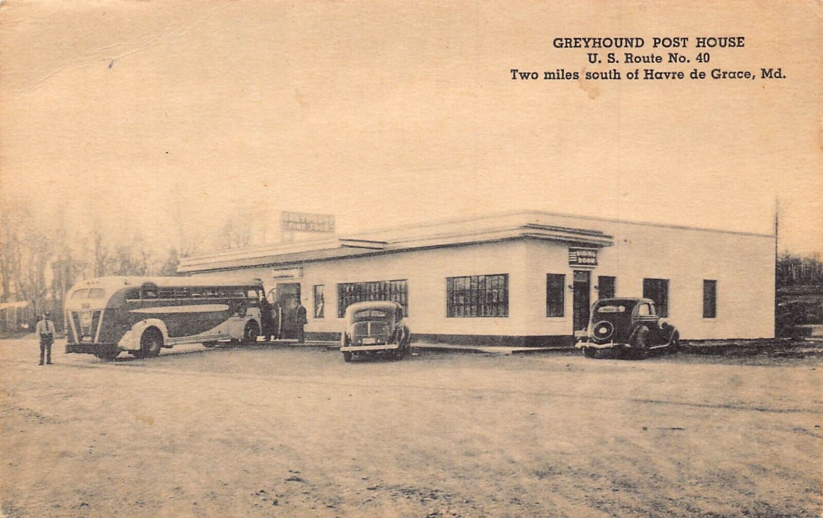 US Havre de Grace Maryland Greyhound Post Office House Cars Bus vintage postcard