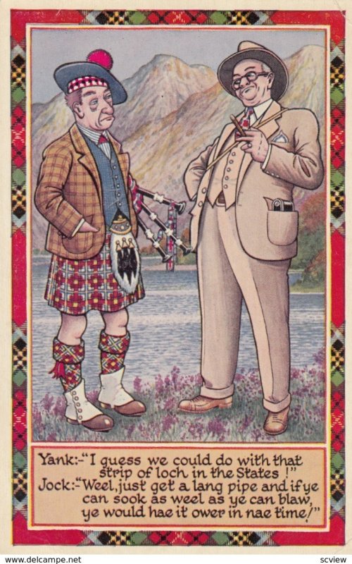 US Man & Scotsman Comic , 1930-40s :: Postcard, Standard Size (3.5 x 5.5 ), Litho