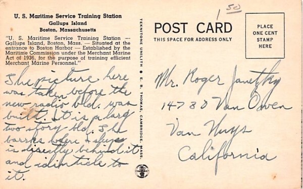 U.S. Maritime Service Training Station Boston, Massachusetts Postcard - Unused