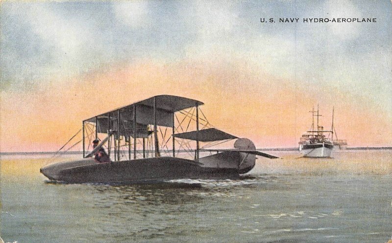 US Navy Hydro Aeroplane Sea Plane 1910s postcard