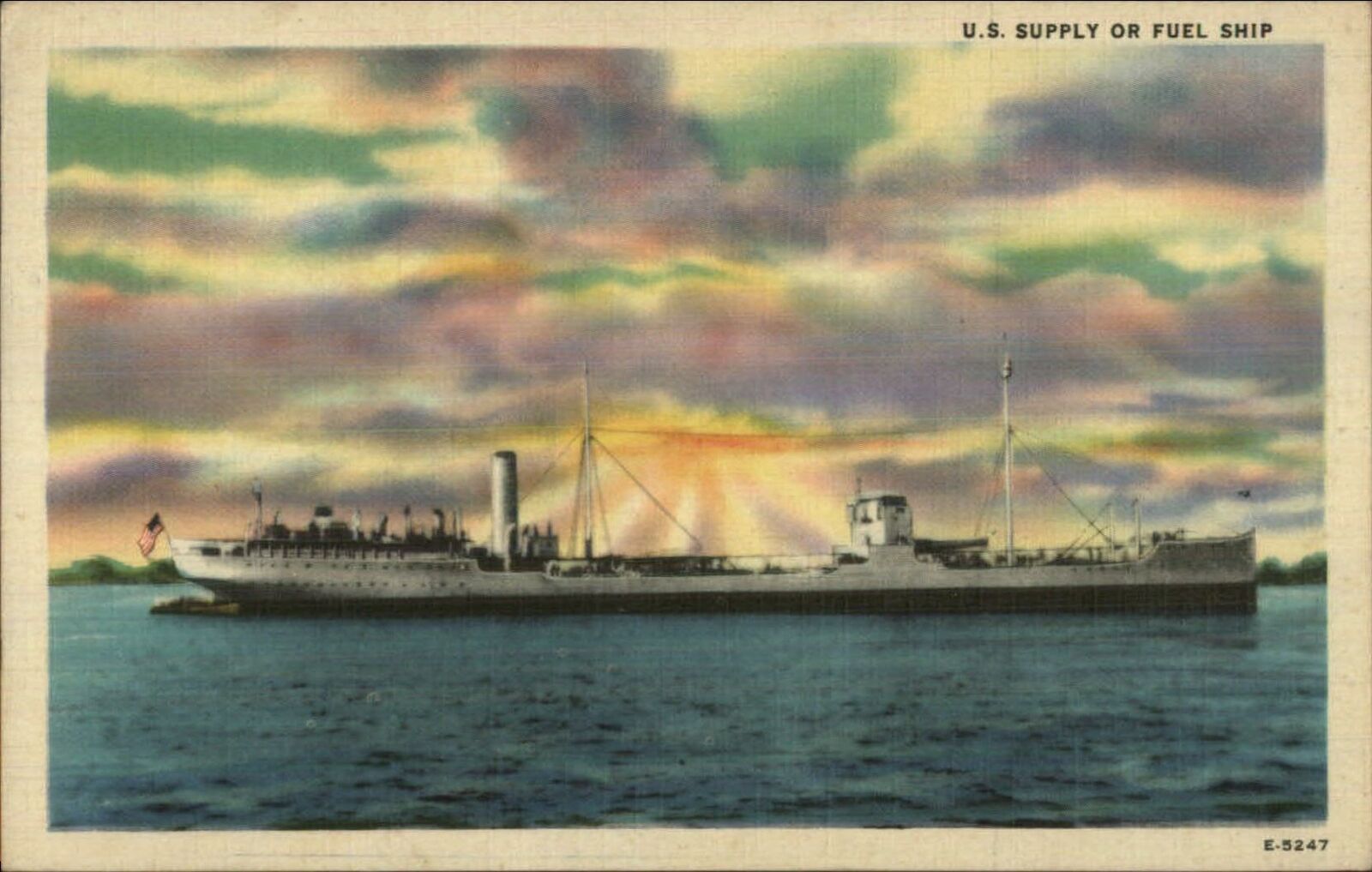 US Navy Supply Fuel hip Linen Postcard c1940s WWII era