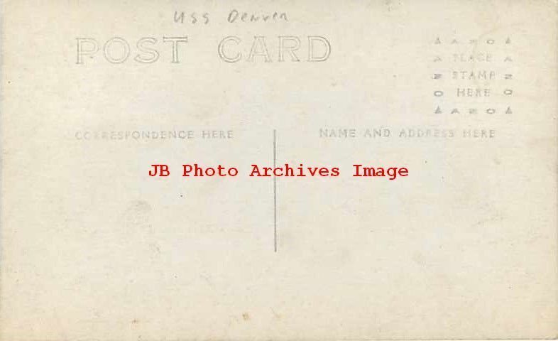 US Navy, USS Denver? Unknown Location, Trimmed Product Photo Click Image for Larger Preview Product Information This is a nice vintage early real photo postcard showing a scene of a US Navy's ship that may be the US ... Read More