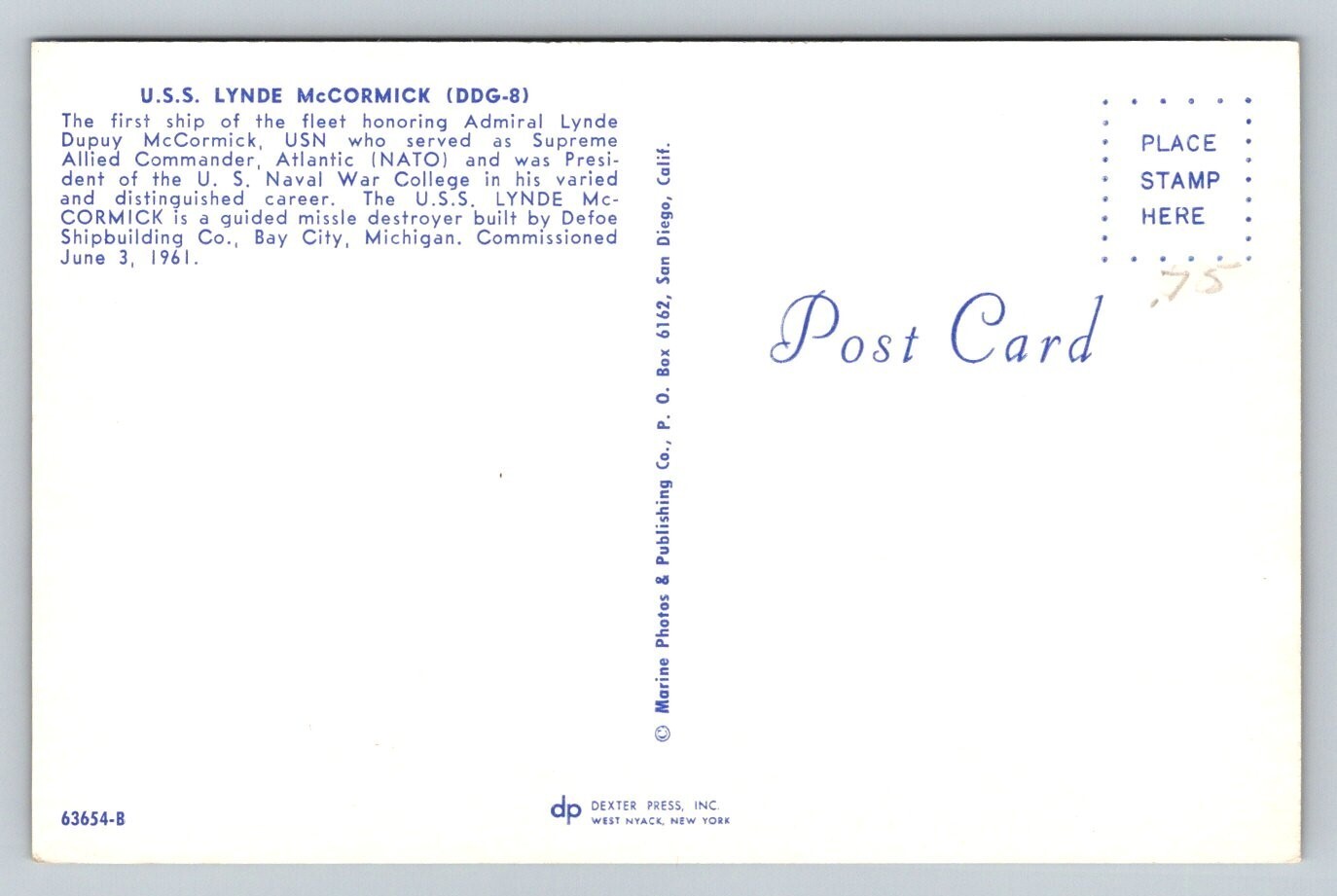 US Navy USS Lynde McCormick DDG-8 Guided Missile Destroyer Postcard