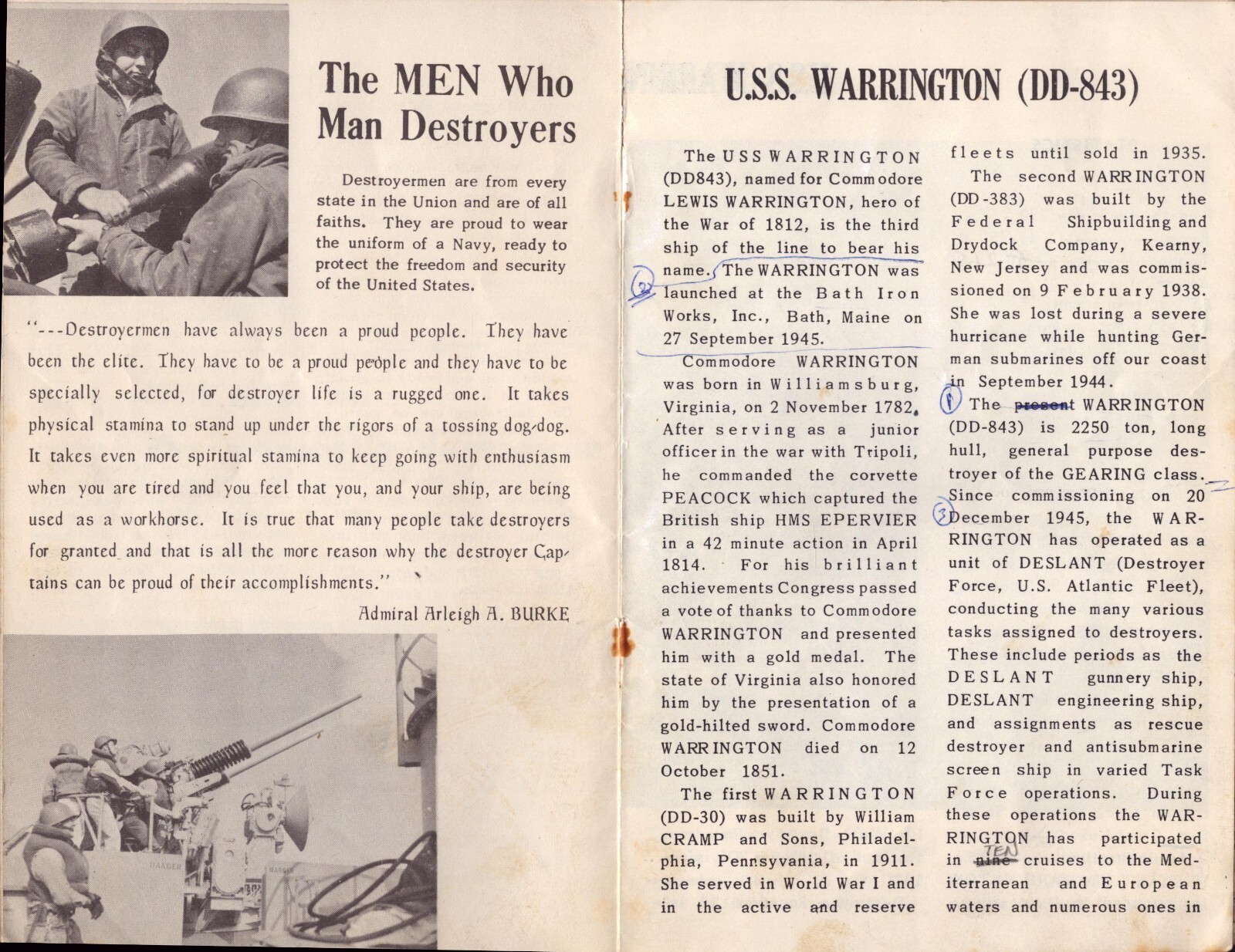 US Navy USS Warrington DD-843 7" x 5"