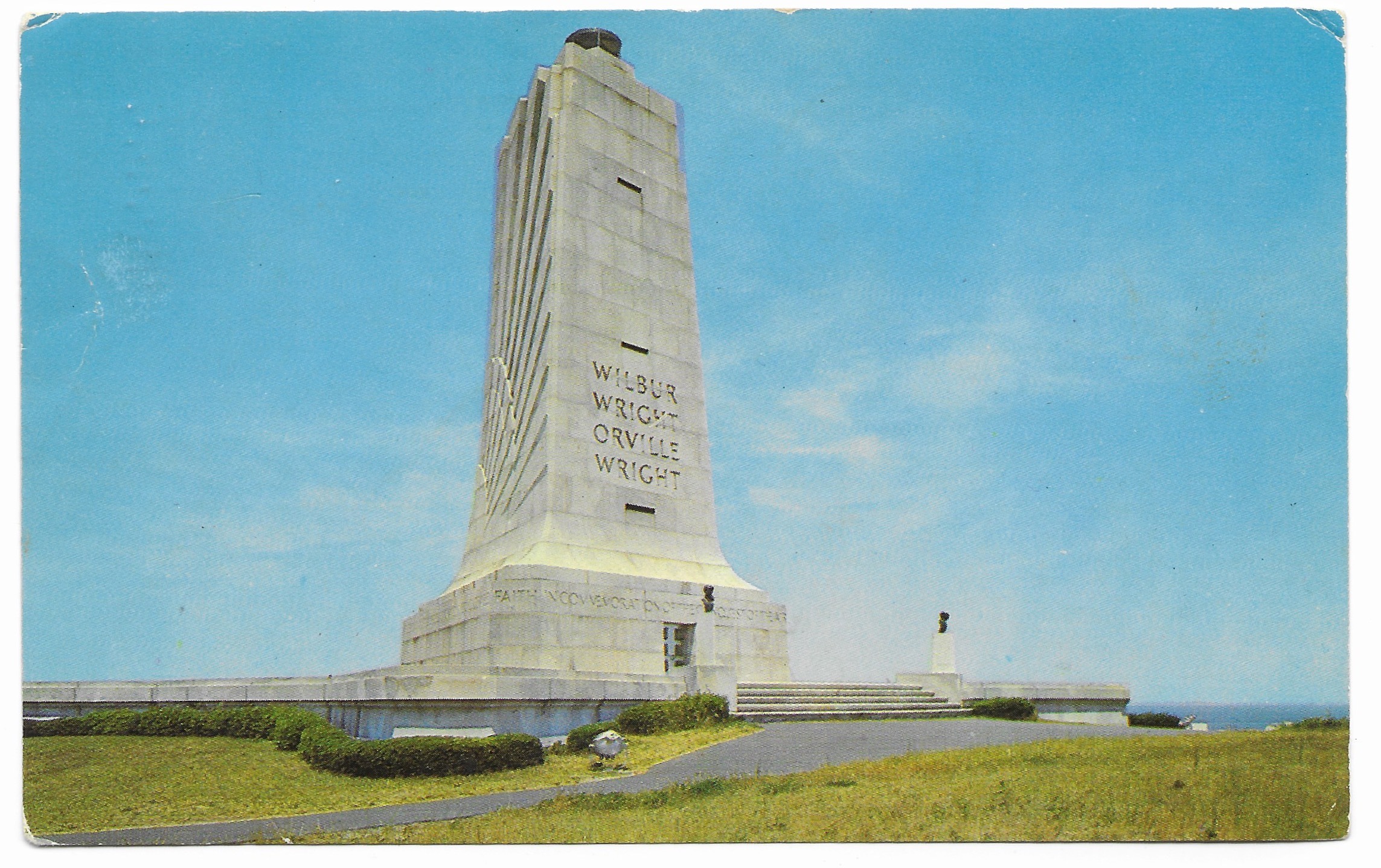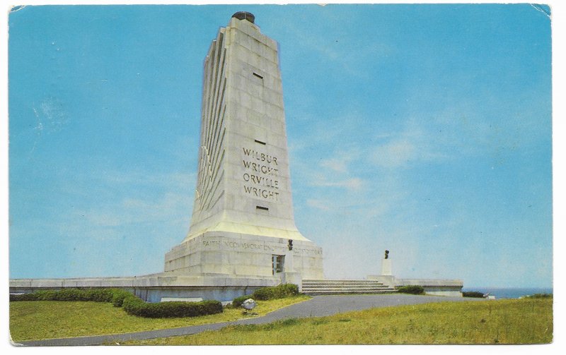 US Wright Brothers Memorial, Kill Devil Hills, North Carolina. Mailed 1966. God. Bless America. Please.