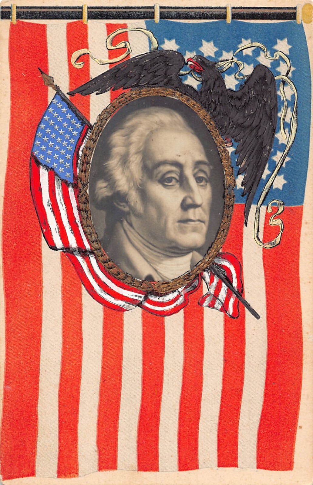 US Patriotic George Washington Eagle Flag Portrait embossed postcard B985
