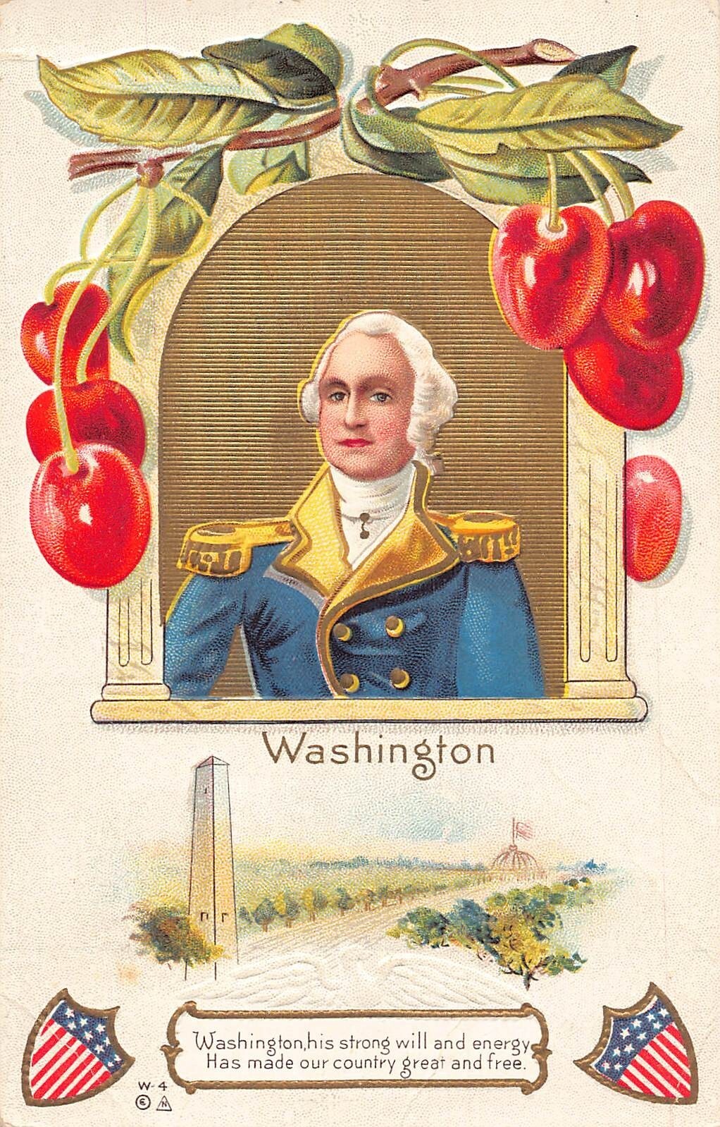 US Patriotic George Washington Portrait Cherry embossed postcard B985 This item is listed via xdm.it software