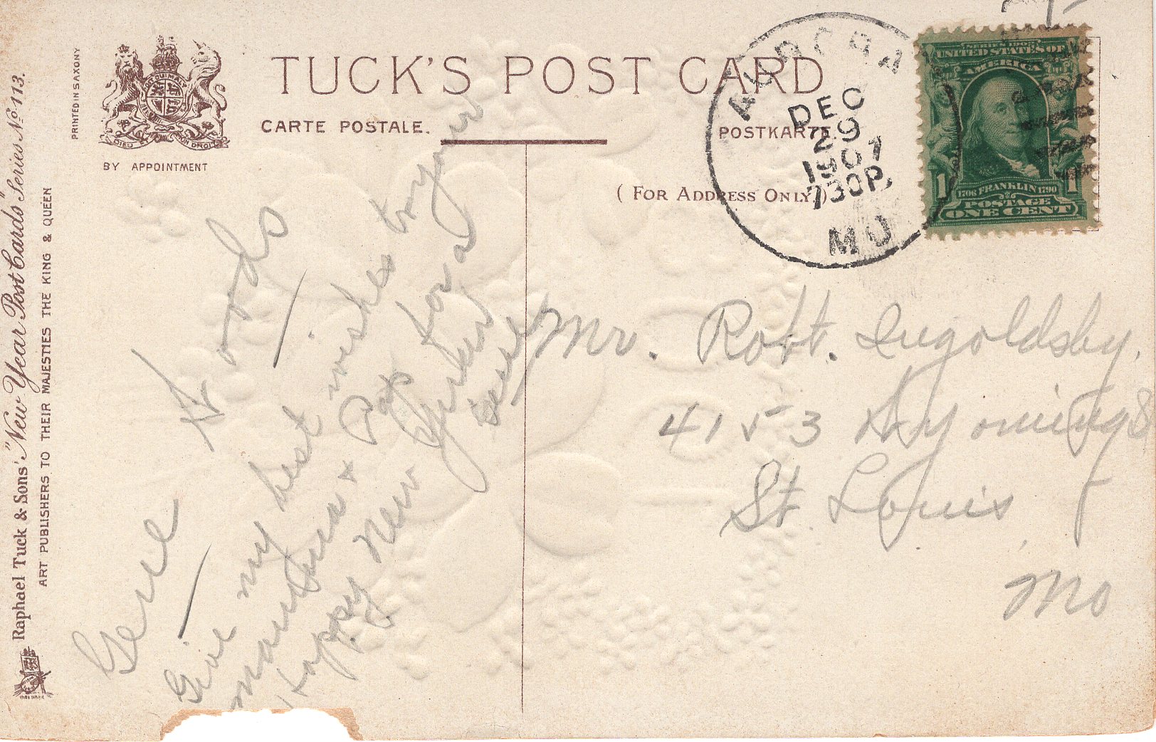 US PC1164 HAPPY NEW YEAR 1908 TUCK'S