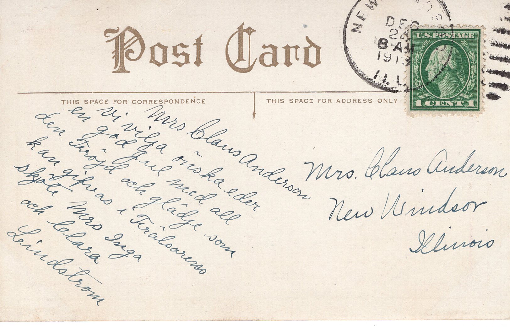 US PC1181 CHRISTMAS WISHES 1913