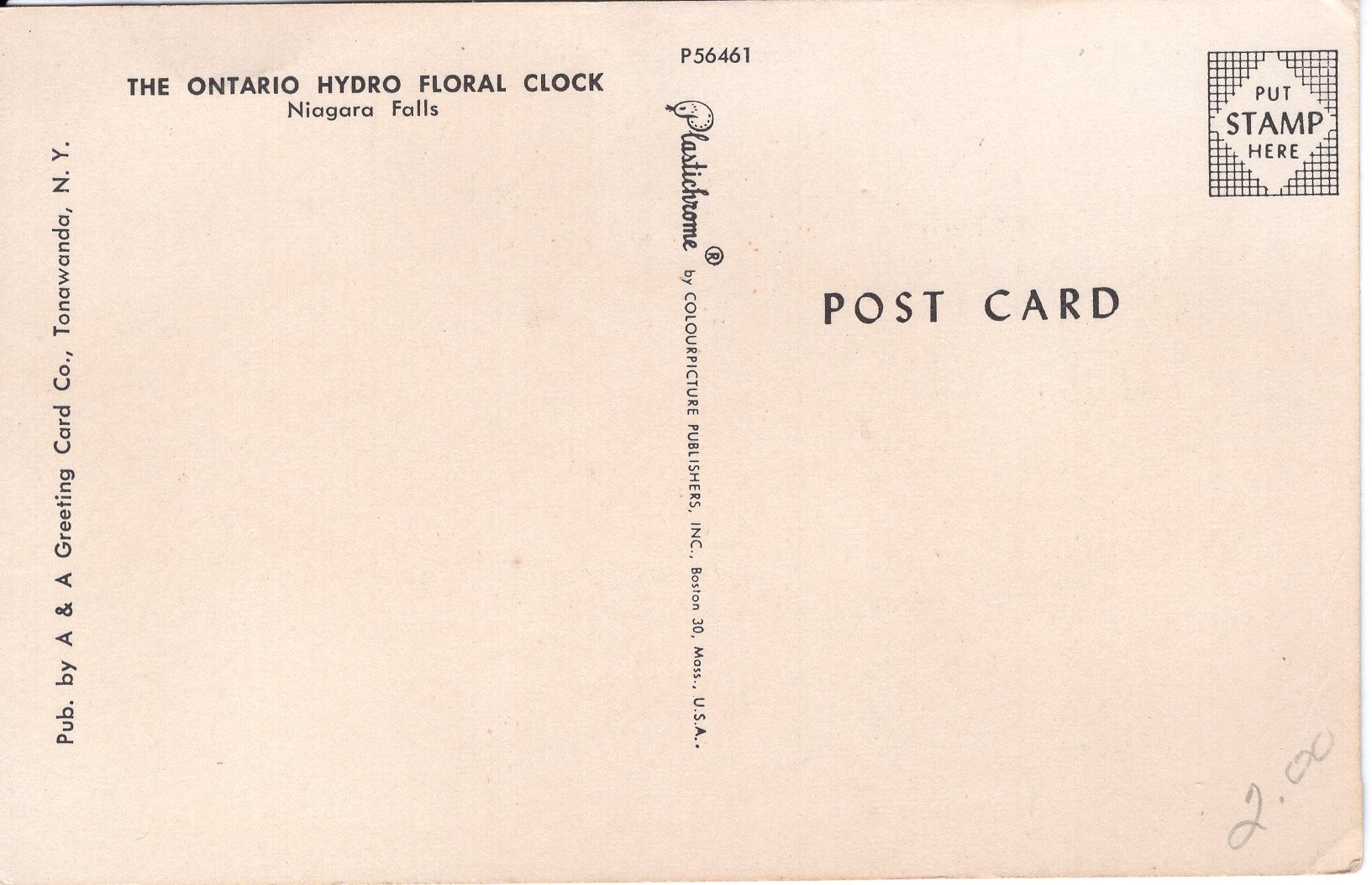 US PC1363 ONTARIO HYDRO FLORAL CLOCK, NIAGARA FALLS