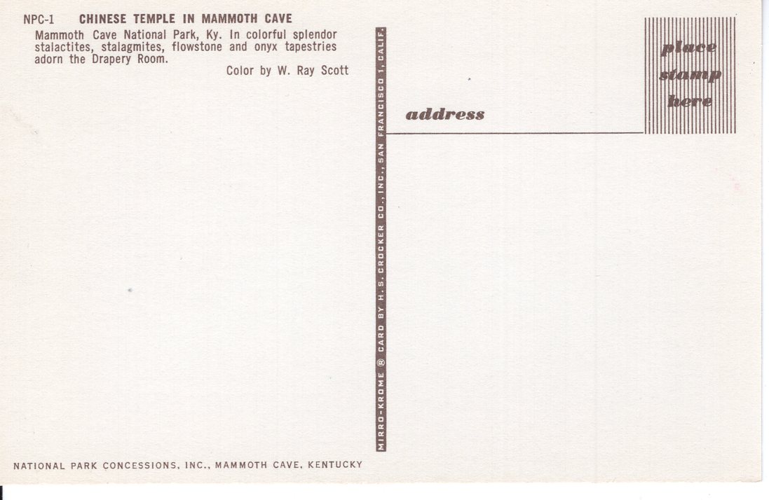 US PC2364 CHINESE TEMPLE IN MAMMOTH CAVE, KY