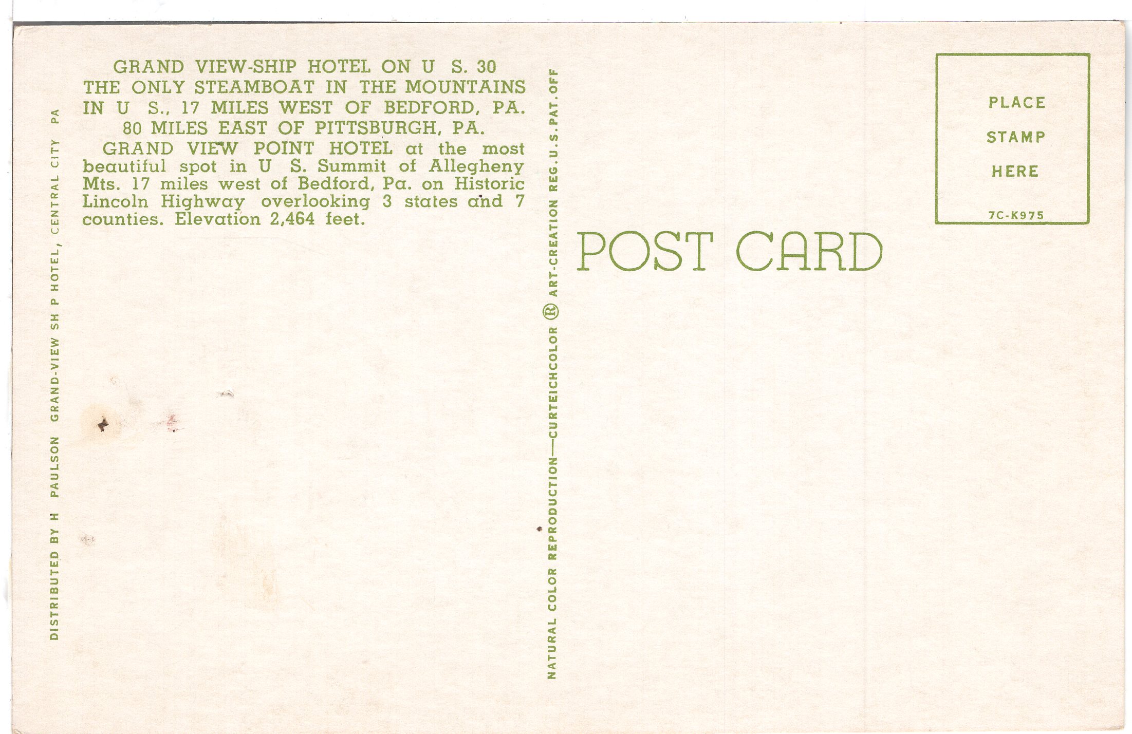 US PC2939 GRAND VIEW SHIP HOTEL, PENNSYLVANIA