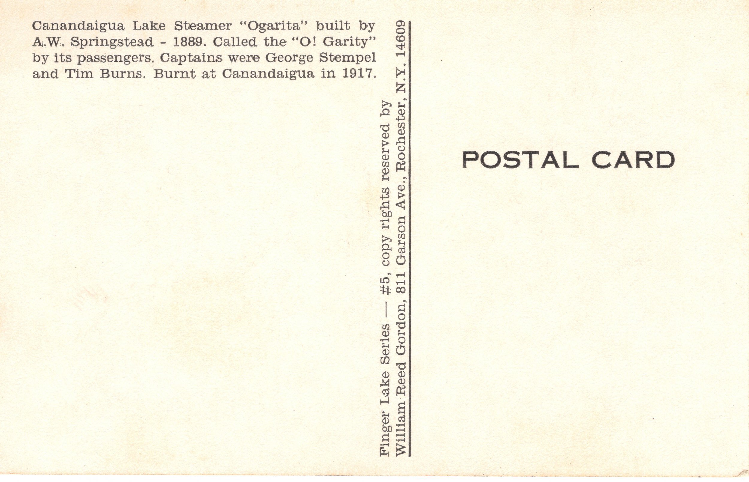 US PC5439 CANANDAIGUA LAKE STEAMER, OGARITA