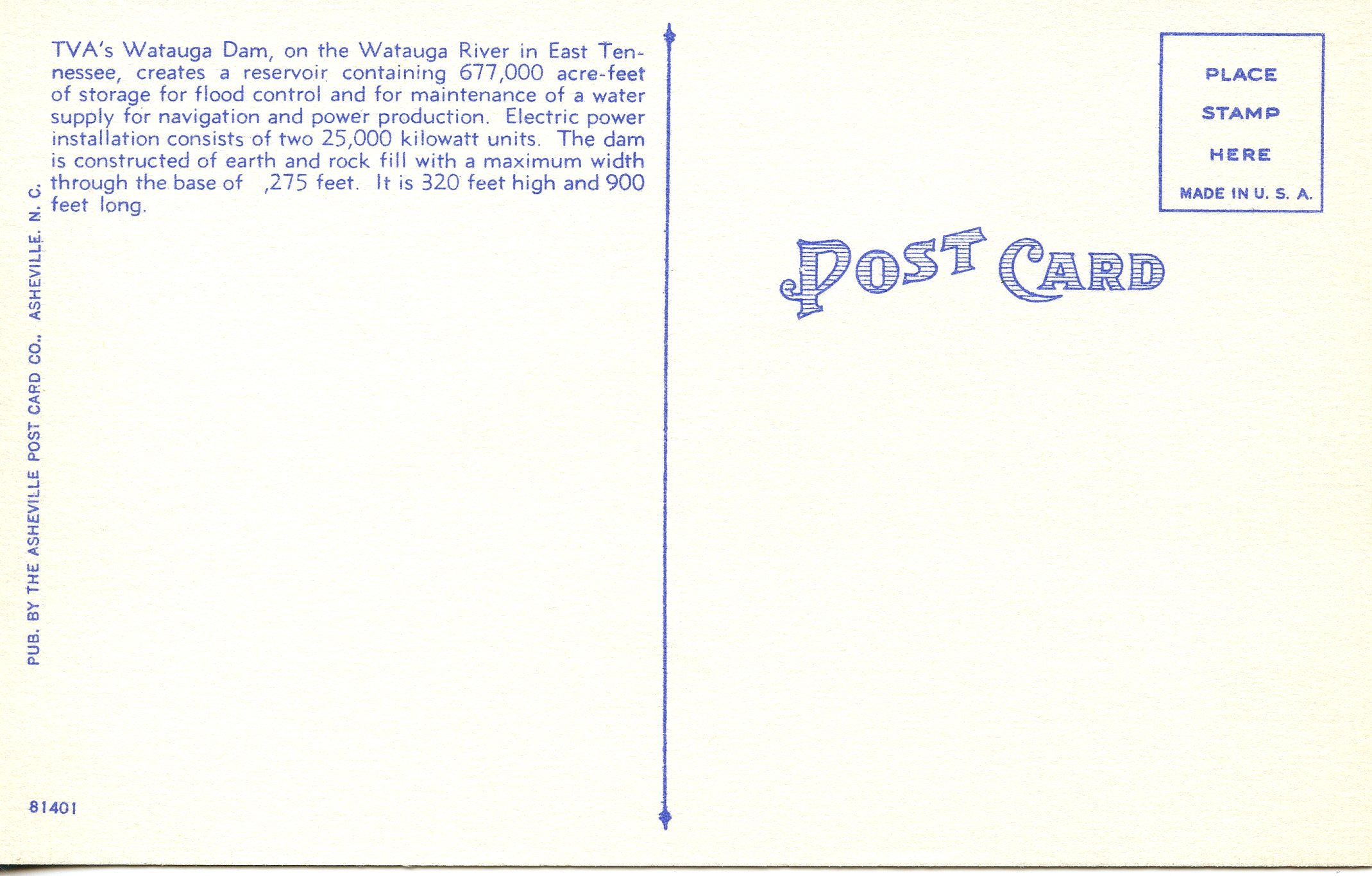 US PC748 WATAUGA LAKE & DAM, TENN.