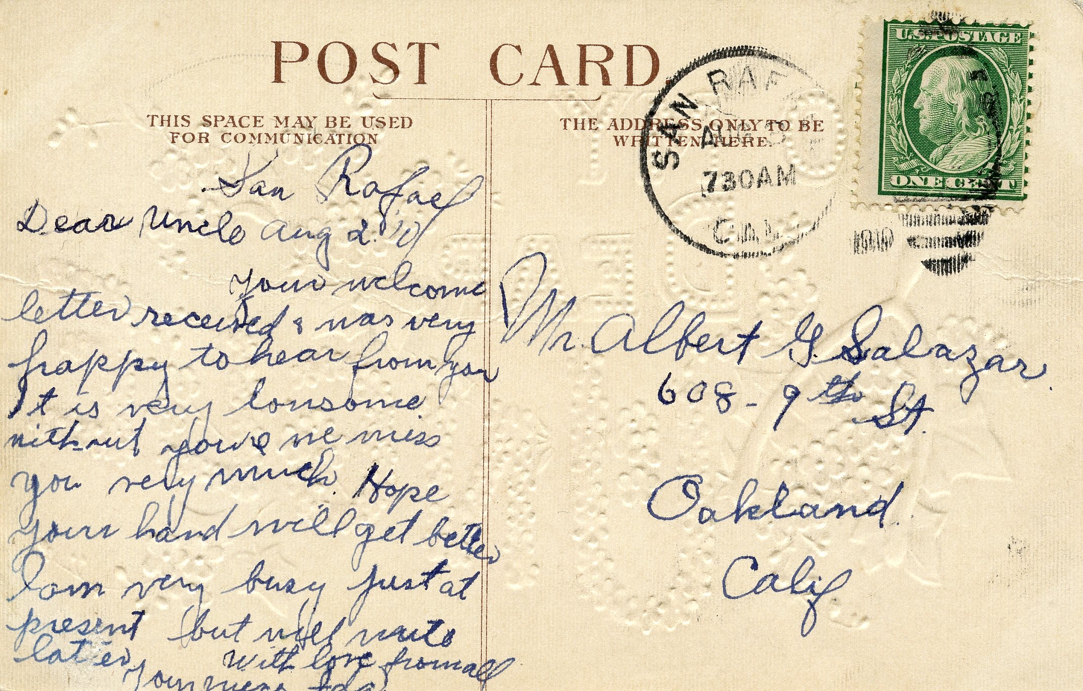 US PC760 DEAR UNCLE - EMBOSSED CARD