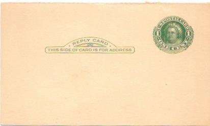 US Postcard Mint. Reply Card with a 1 Cent Martha Washington