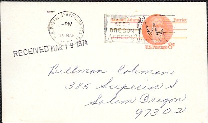 US Pre-stamped Postcard UX66 Samuel Adams.