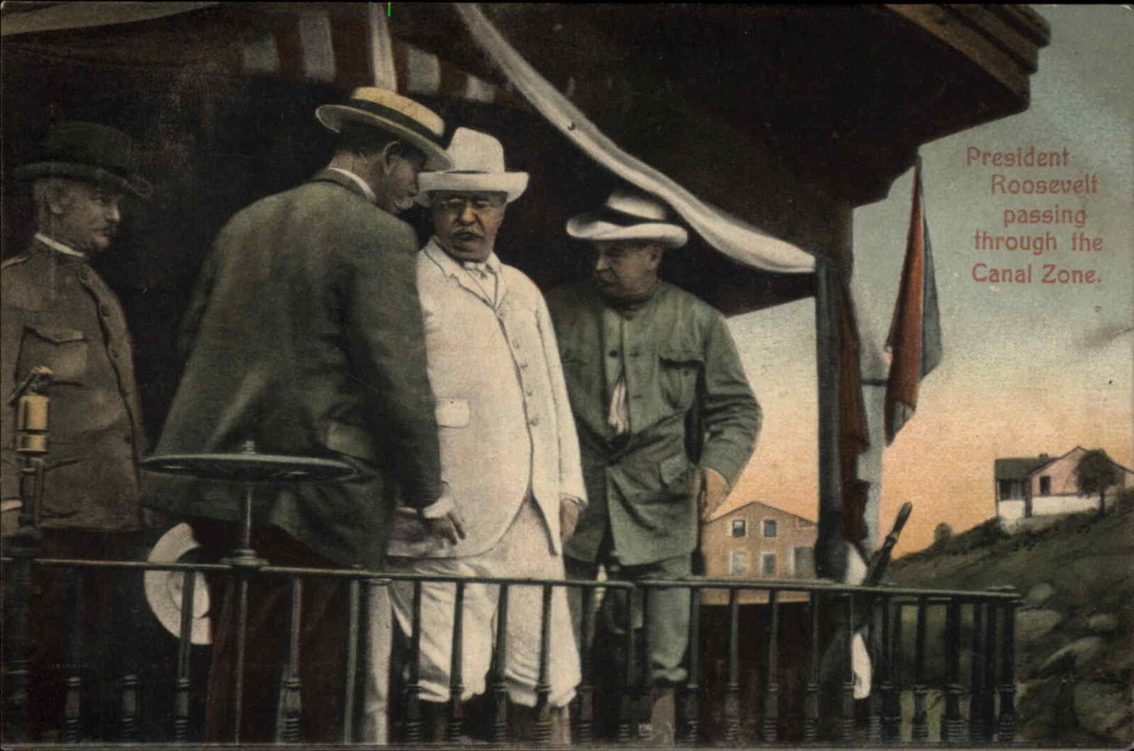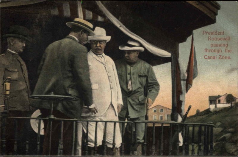 US President Teddy Roosevelt Panama Canal RR Train c1910 Postcard