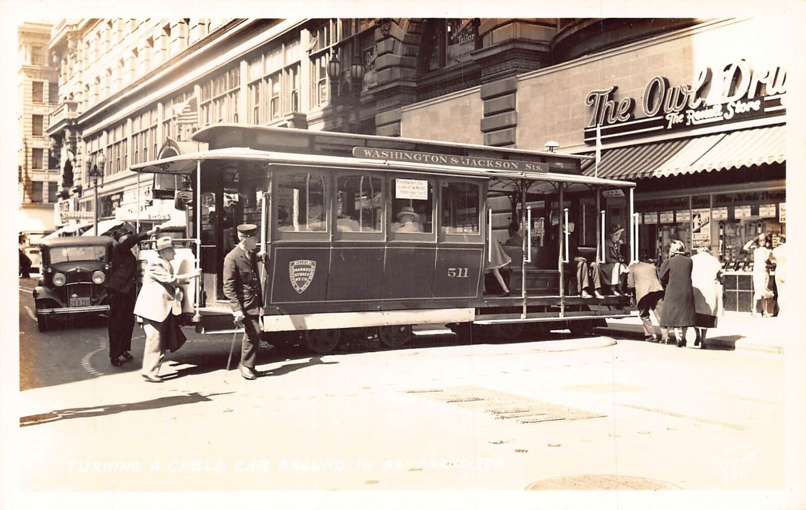 US Turning Cable Tram San Francisco Washington & Jackson STS RPPC postcard This item is listed via xdm.it software