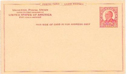 US Unused. McKinley 3 cent post card. 1926. Universal Postal Union.