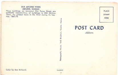 Nice post card, Unused. Showing Old Abilene Town - Abilene, Kansas God, Bless America. Please.