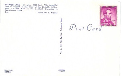 US unused postcard, Trapper Lake, Cascades, Washington State