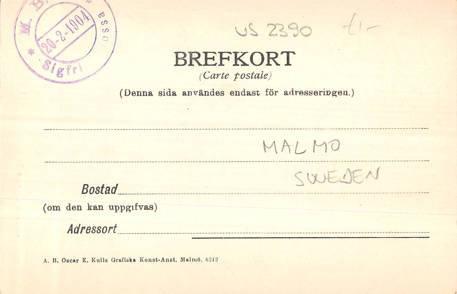 US2390 Sweden Malmo Plate Barnkrubba postcard