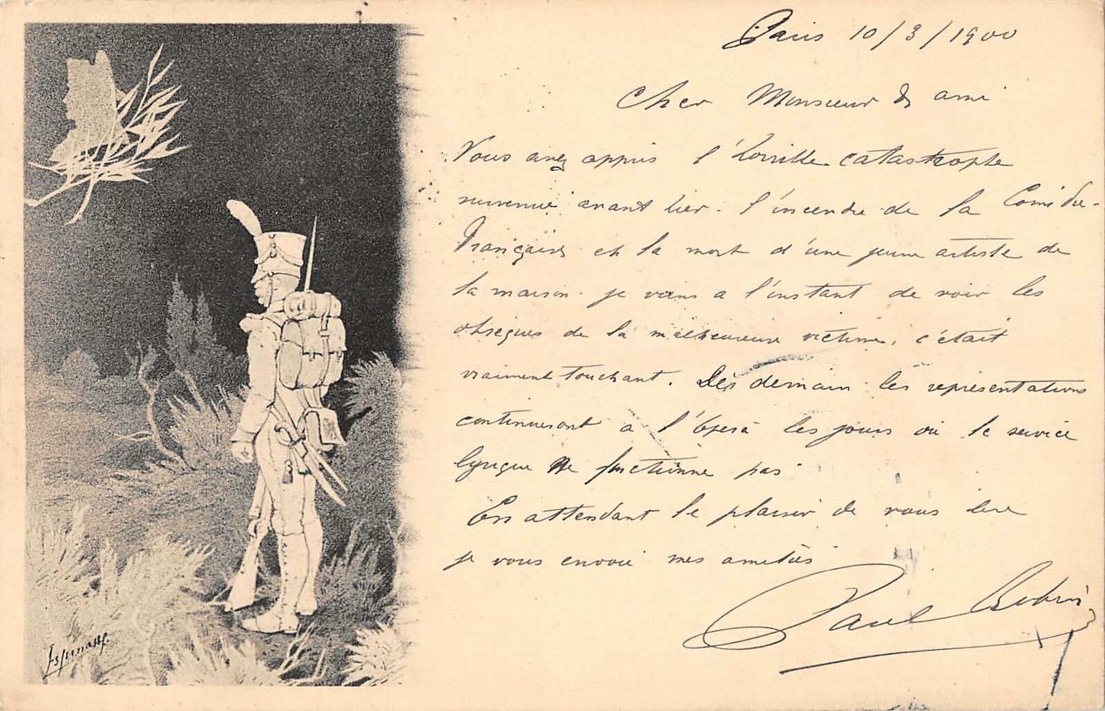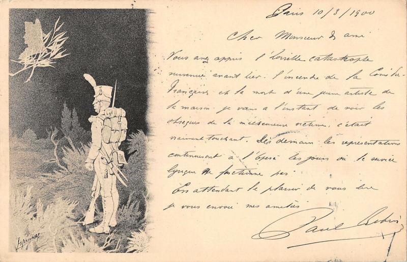 US2799 Paris Man with Backpack in Forest Postcard 1900 patriotic