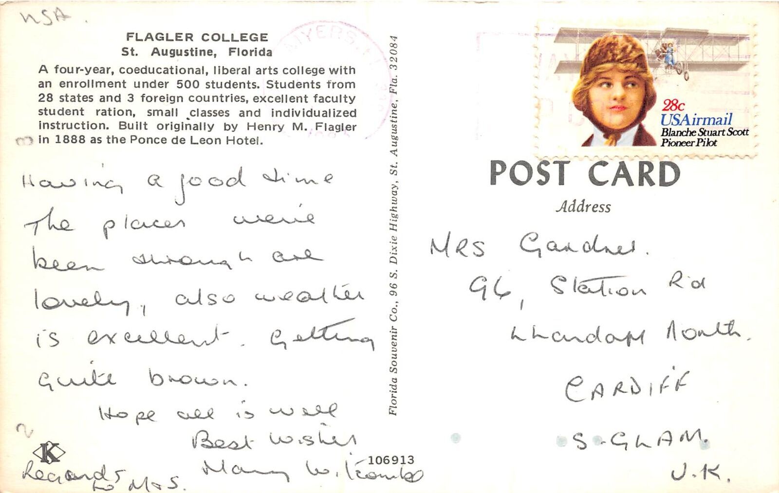 US4 USA FL Flagler college St Augustine Florida postacrd