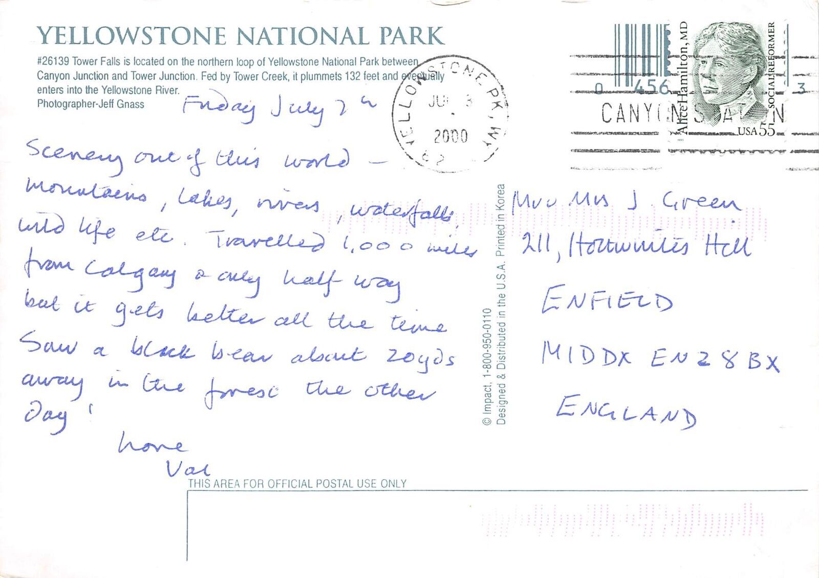 US6 USA Yellowstone National Park Tower falls 2000 postcard