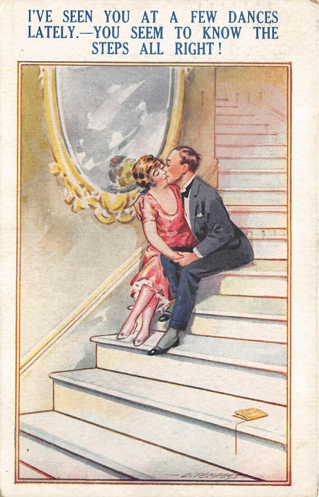 US6159 couple kissing comic postcard uk artist signed