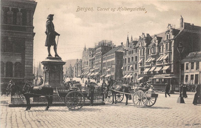 US6233 bergen torvet og holbergstatue norway