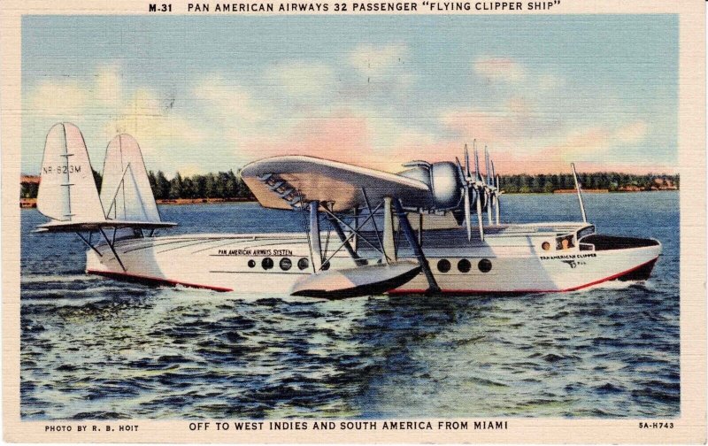 USA 1940 Pan Am Flying Clipper Ship Postcard Airplane Curteich Bahamas Postage/ Please view the images carefully to assess condition