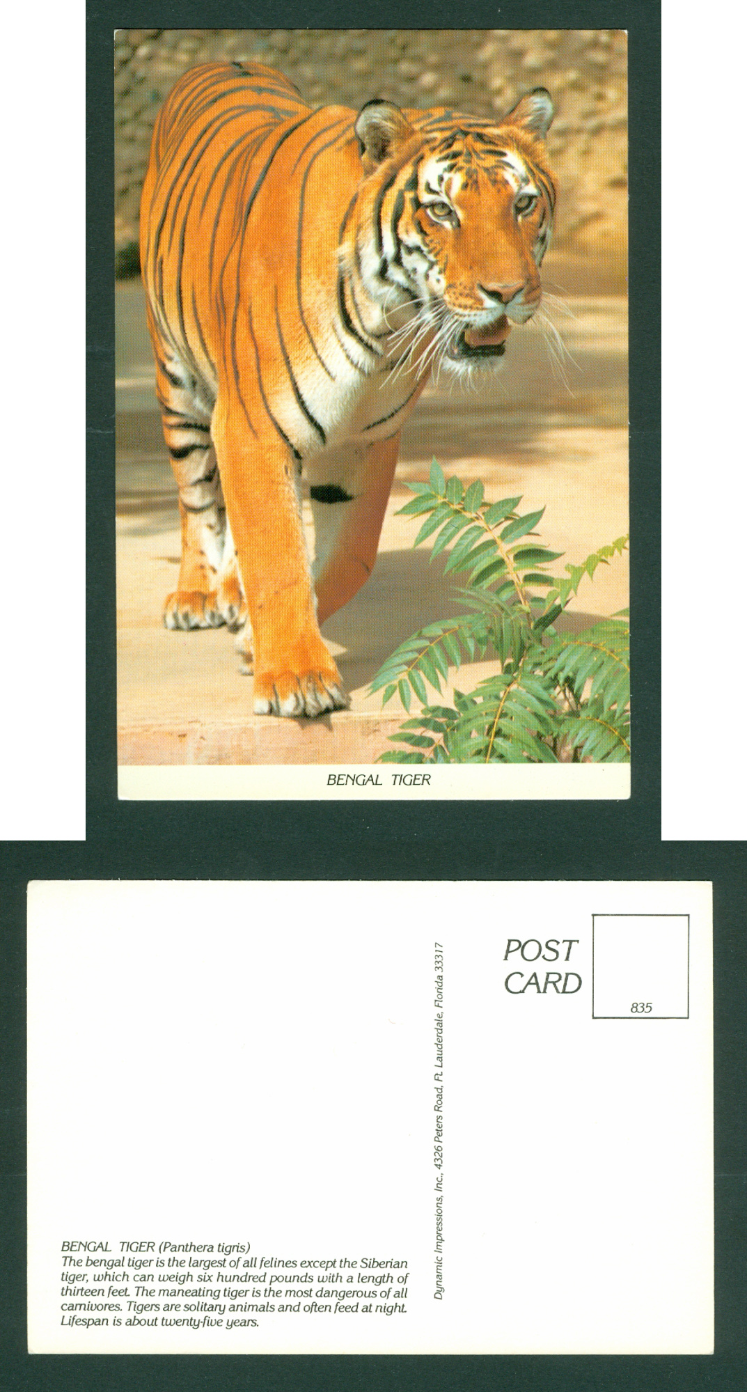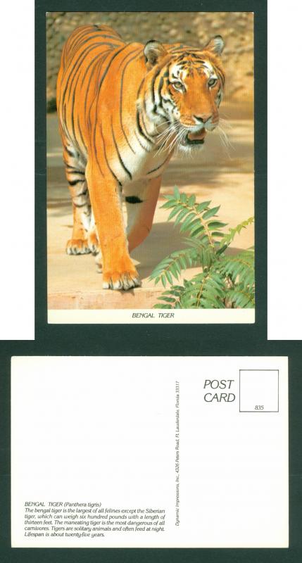 USA: Postcard " Bengal Tiger" Card Size: 4" x 5 3/4. Cm. 10 x 15. Publisher: Dynamic Impressions Florida.