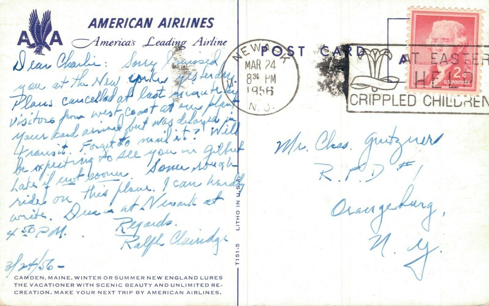 USA Camden Maine Chrome Postcard 07.37