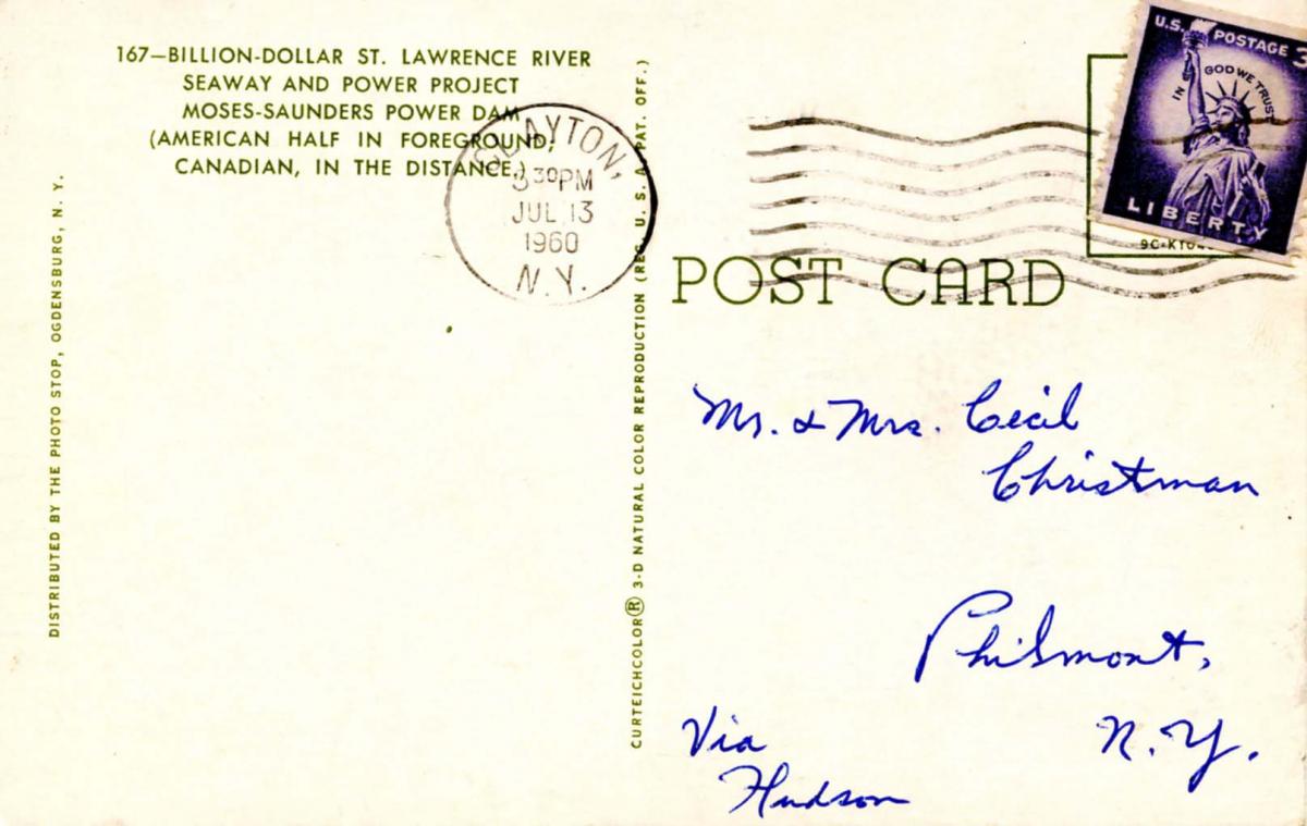 USA - Canada: Moses-Saunders Power Dam Construction, St Lawrence River Seaway --- * Grading of Postcards MINT (M): Perfect condition, no apparent blemishes, flaws, postally unused, may have some writing on back. ... Read More