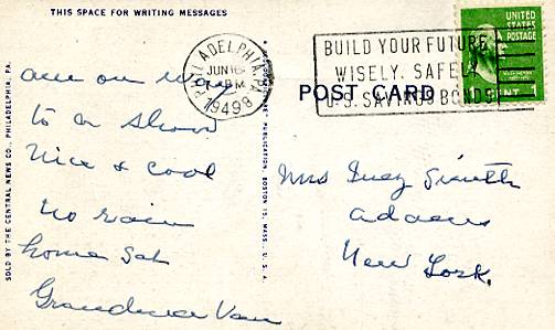 USA Flag and Liberty Bell --- E, PU, DB, L, WOB, PM 1949