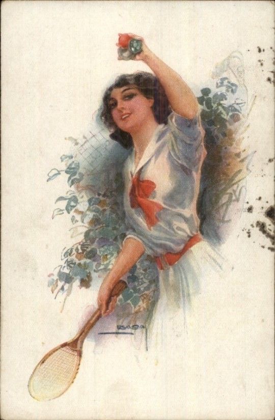 USABAL - Beautiful Woman Playing Tennis c1910 Postcard