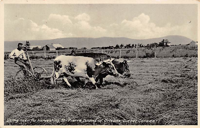 Using Oxen for Harvesting Quebec, Canada Farming Unused