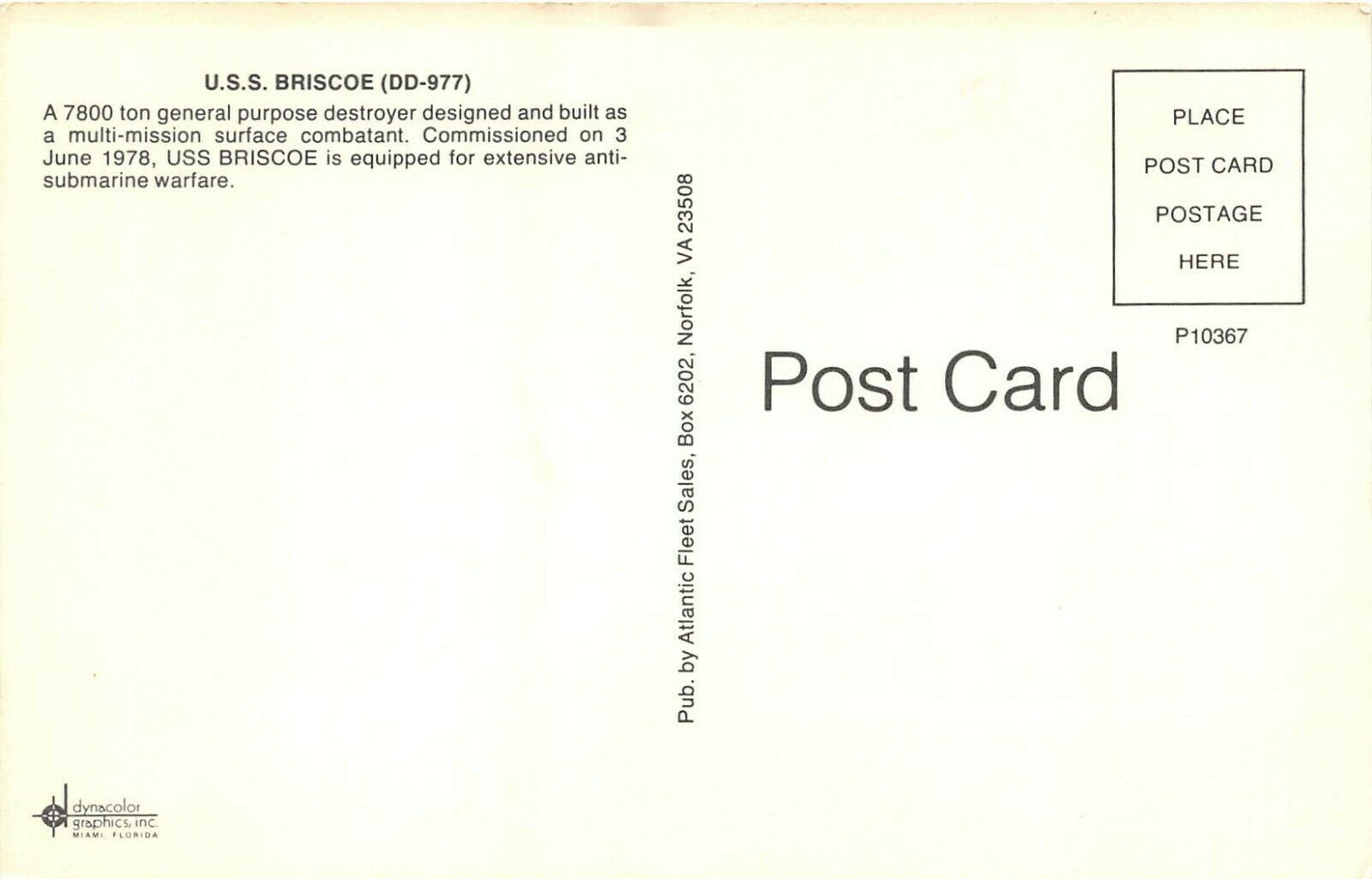 USS Briscoe DD-977 General Purpose Destroyer c19878 Navy Ship Postcard