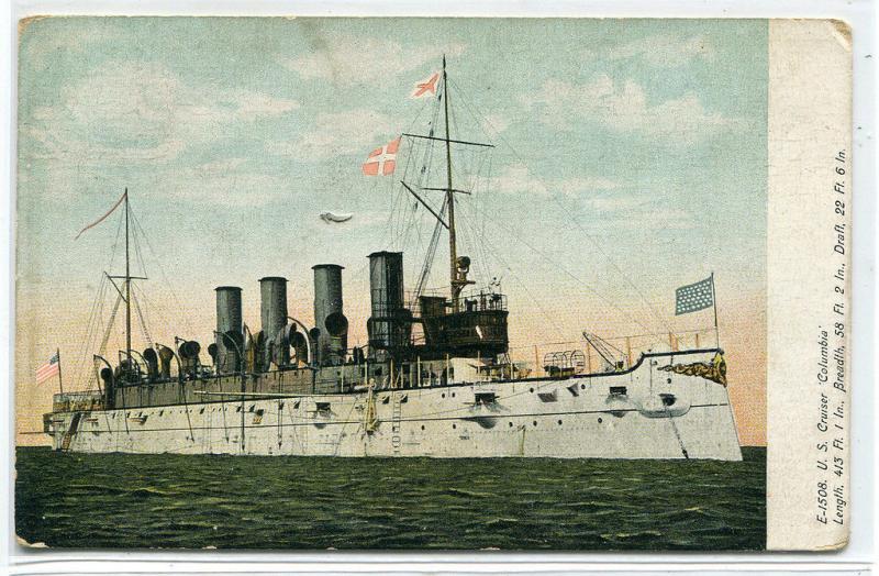 USS Columbia Cruiser US Navy Ship 1909 postcard